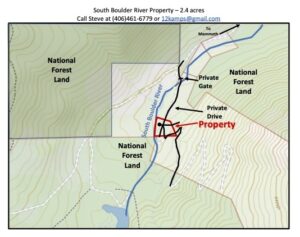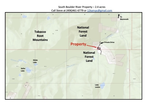 Where can you find a property like this with South Boulder River frontage bordering the National Forest with a leveled cabin site in the forest and such amazing fishing opportunities, hunting and mountains right outside your legacy property? The answer is right here. This opportunity isn’t one you’ll want to miss or regret not taking advantage of. Just call the owner directly at 406-461-6779 to find out more about owning this extremely rare recreational riverfront mountain property. It’s For Sale By Owner and it’s one phone call away.