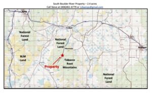 This is an EXTREMELY RARE property right on the banks of the South Boulder River. It can’t be stressed enough what an incredible find this unique opportunity is to own property right out in the heart of the Tobacco Root Mountains bordering tens of thousands of acres of National Forest lands. The Tobacco Root Mountains provide a mecca of recreation from its renown fishing on the South Boulder River and all its pristine high mountain lakes, to hiking the hundreds of miles of trails, to ATVing the jeep roads, to wildlife sightseeing and hunting, to climbing the mountain peaks and everything in between. The area has it all, and owning this fantastic property will put every bit of it right at the back door of the cabin in the mountains you always wanted to build. You’ll want to order a copy of the Beaverhead-Deerlodge National Forest – Central map so you can plan your days and weeks of hiking, fishing, hunting, biking, and ATVing. The Montana mountain wildflowers here are phenomenal too. There’s so much to see and enjoy. The views are breathtaking, and the setting is one you’ll have to see and experience to believe.