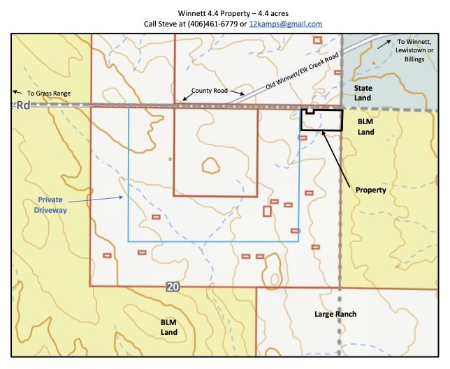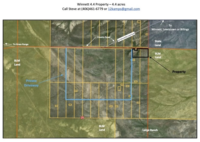 The property sits at the very end of a private driveway that connects to the Elk Creek Road which is a county-maintained road. Its about 1 ¼ miles of drive-across, unimproved driveway out to the county road and then about 7 miles to the small town of Winnett that has a small grocery store, gas, and lodging. From there its only about 55 miles to Lewistown, Montana, which is known for being the heart of Montana (it’s literally located in the center of the state) with a flair on cowboy culture offering a friendly hometown atmosphere, modern art galleries, yogo sapphires, and eateries for every palate.