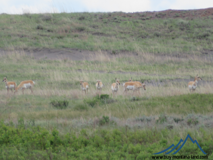 Montana property bordering Bureau of Land Management (BLM) land at the very end of the road with deer and antelope out in the countryside by Winnett, Montana.